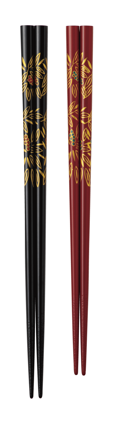 輪島塗の産地ならではの細やかで美しい蒔絵などの加飾や塗りの技術を生かした重ね塗りなどのお箸が特徴です。